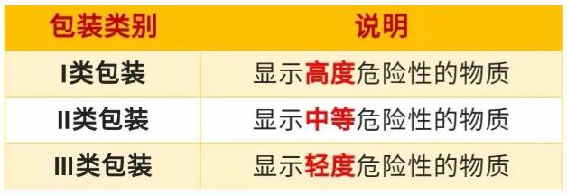 按照危險程度,對第1類、第2類、第7類、第5類的5、2項、第6類的6、2項以及第4類的4、1項自反應(yīng)物質(zhì)以外的其他各類危險貨物,可劃分為I類、II類、III類三個包裝類別:
