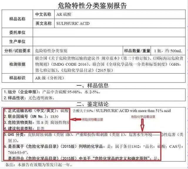 但上述條目繁雜,有時難以把握,可以向有資質(zhì)的機構(gòu)申請危險特性鑒別報告,同時鑒別危險貨物種類和危險化學品的危險特性。