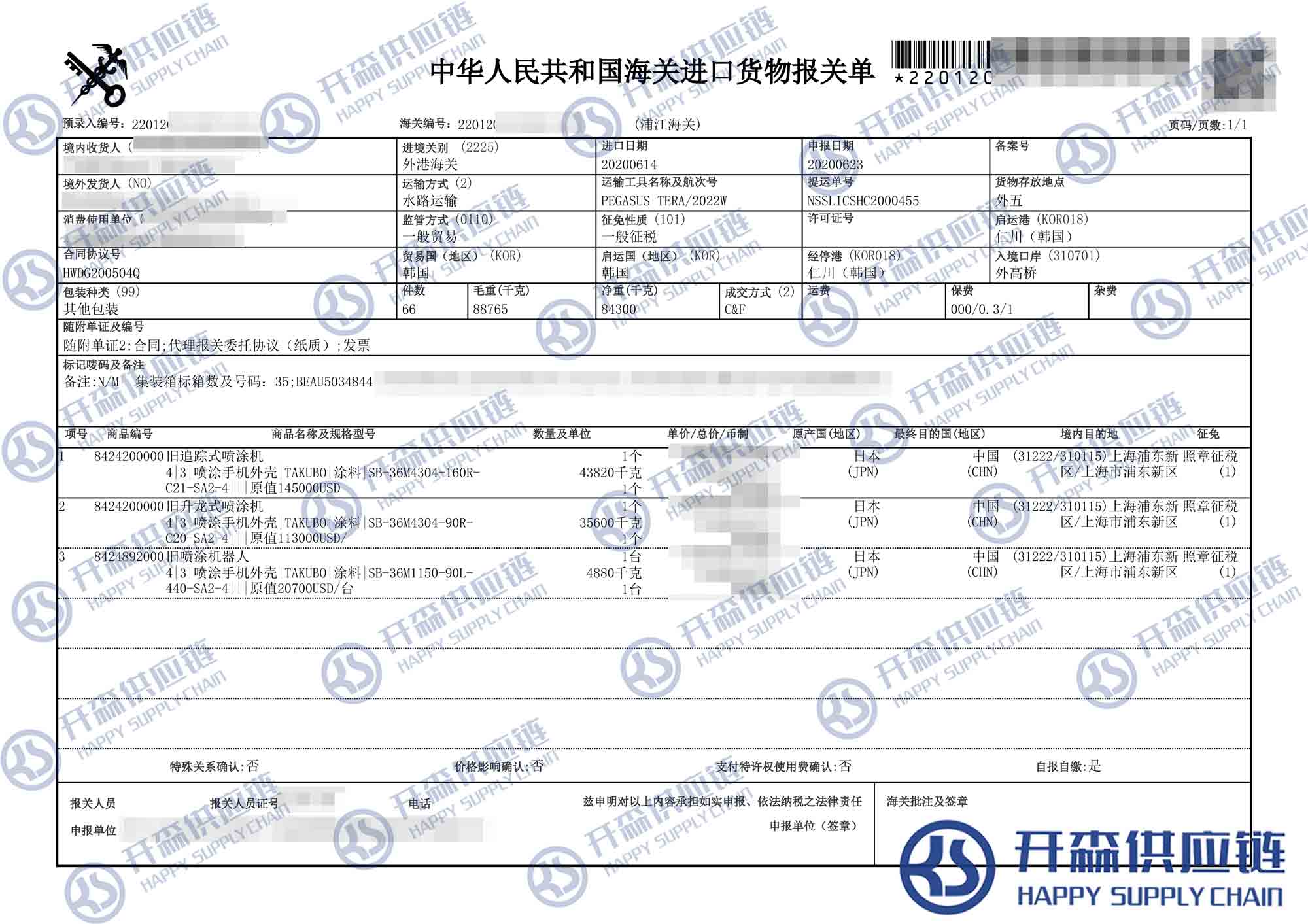 【本文結語】 上述就是上海港韓國舊追蹤式噴涂機進口報關代理【進口案例】的全部內容,希望能對您有所幫助,如有二手機械進口報關上任何疑問及問題可隨時在線聯系我們或撥打 18002611553,開森供應鏈擁有豐富的二手機械進口報關操作經驗及案例,10余年進口經驗為您所用,各類進口疑難都能為您一一解答及協助快速處理解決!