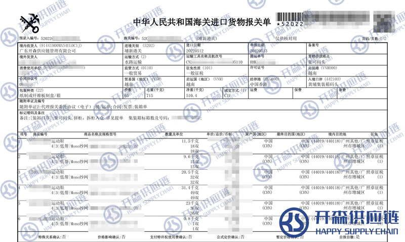 一、越南運(yùn)動(dòng)鞋進(jìn)口報(bào)關(guān)代理案例詳情