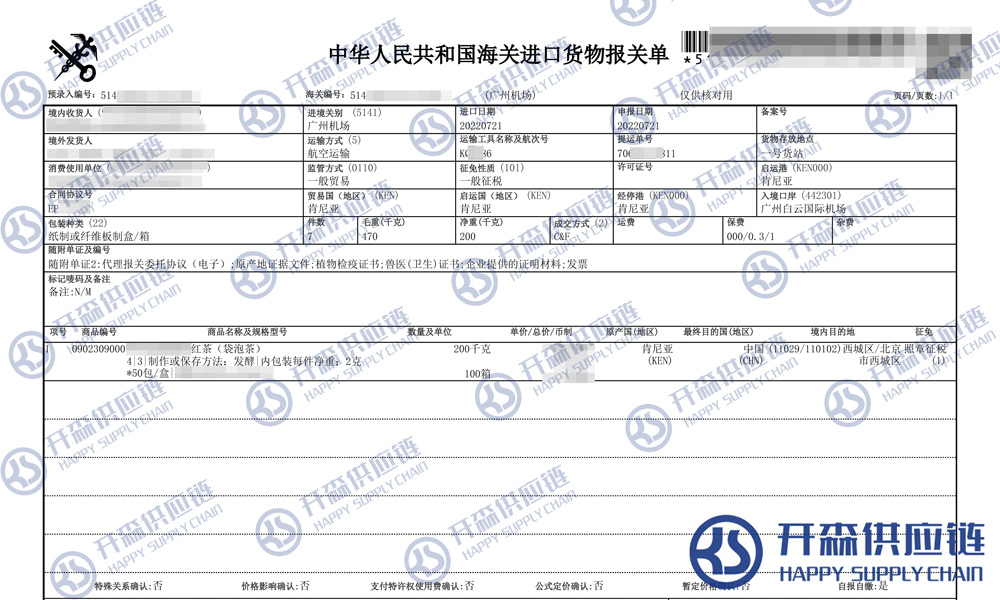 【本文結語】 上述就是肯尼亞紅茶包進口報關清關代理案例【經典案例】的全部內容,希望能對您有所幫助,如有食品進口報關上任何疑問及問題可隨時在線聯系我們或撥打 18002611553,開森供應鏈擁有豐富的食品進口報關操作經驗及案例,10余年進口經驗為您所用,各類進口疑難都能為您一一解答及協助快速處理解決!